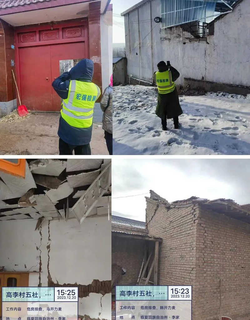 2023年12月19日臨夏積石山發(fā)生6.2級地震后,甘肅宏強工程檢測有限公司作為省內(nèi)建筑工程檢測民營企業(yè),主動擔起社會責(zé)任,按照主管部門的領(lǐng)導(dǎo)部署,緊急抽調(diào)7名精干的建筑工程檢測人員,赴地震災(zāi)區(qū)一線,積極投入建筑物應(yīng)急評估工作中,對災(zāi)后建筑科學(xué)定位、準確評估,為后續(xù)抗震救災(zāi)工作開展提供技術(shù)支持,為受災(zāi)群眾早返家園貢獻提供有力保障。